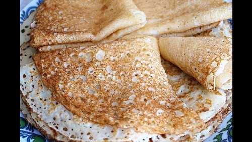 Этот рецепт тонюсеньких, вкуснейших блинчиков достоин исполнения на вашей плите не только в будни, но и в праздники, например – на Масленицу! Сода, которая предусмотрена в рецепте, хорошо рыхлит тесто и делает блинчики еще более ажурными и воздушными. А если вы хотите, чтобы ваша выпечка получилась не только кружевной, но и хрустящей, тогда добавьте в тесто не 2, а 3-4 яйца.
