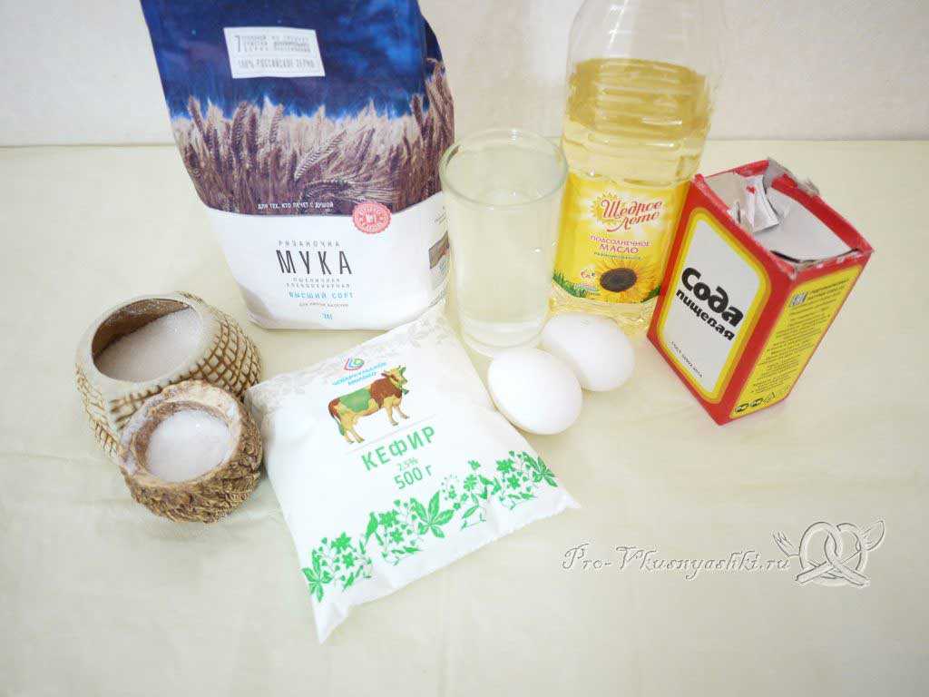 Подготавливаем ингредиенты. Муку необходимо просеять, чтобы конечный продукт был более воздушным и мягким. Продукты лучше использовать комнатной температуры. Чем ниже процент жирности кефира, тем менее калорийными будут блины.