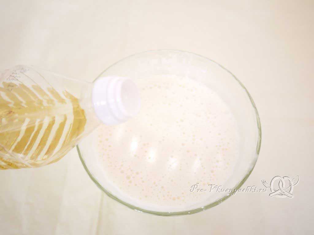 - Теперь влейте растительное масло и ещё раз хорошо перемешайте.