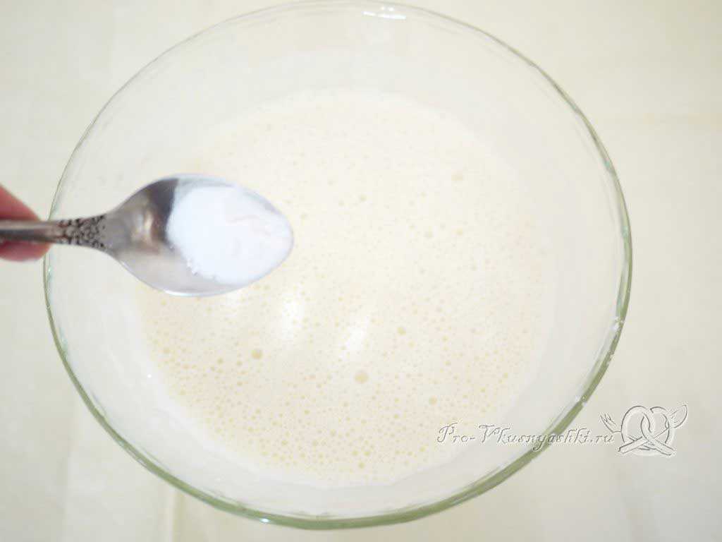 - Смешайте в глубокой посуде муку, соду, сахар и соль.