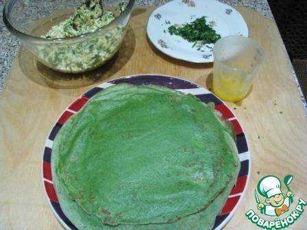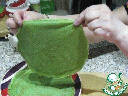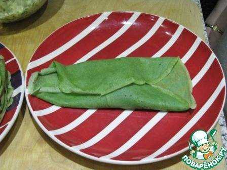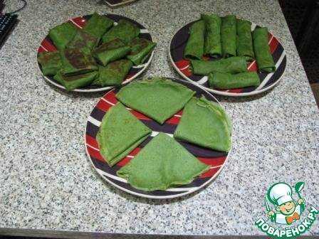 - Готовые зеленые блинчики складываем стопкой и даем им остыть.